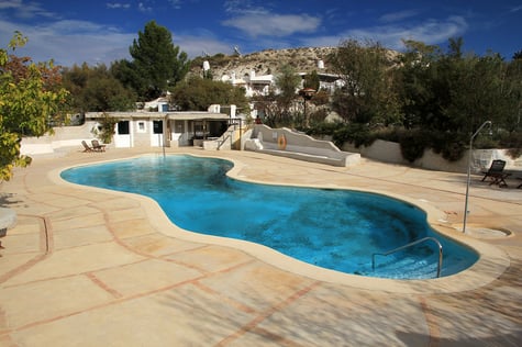 The cave house is part of a small cave complex, which is situated in the countryside of Baza. It has one double bedroom, a living room with an open kitchen, a bathroom and a sun terrace. The complex itself has a cave bar, a tea room and a cave restaurant. From June till October you can enjoy the big communal swimming pool, which is situated on 100 meter distance. You can also take an Arab bath (a hamman) or a massage in order to relax totally. This hammam is constructed completely in a cave and in the hamman are hanging rooms for ladies and men, a hot bath, a warm room and a cold bath, a natural solarium and a massage room. These services are offered for an additional fee.