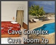 The four cave rooms are situated in a big cave house that belongs to a cave houses complex which is situated in the countryside of Baza. The cave house has a common living room and a sauna. Every cave room has a bedroom and a bathroom Outside is a big swimmingpool, which is open from June till October, depending on the weather conditions. The complex has a cave bar, a tea room and a cave restaurant. There are also Arabic baths (a hamman) which can be used for an additional fee.