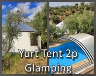 Lanjarón (countryside) - Alpujarra: The Yurt has a diameter of 5m , a wooden floor and canvas walls. It is equiped with a double bed and a sink with a kitchen top. The toilet, sauna and swimming pool are in common use and are...