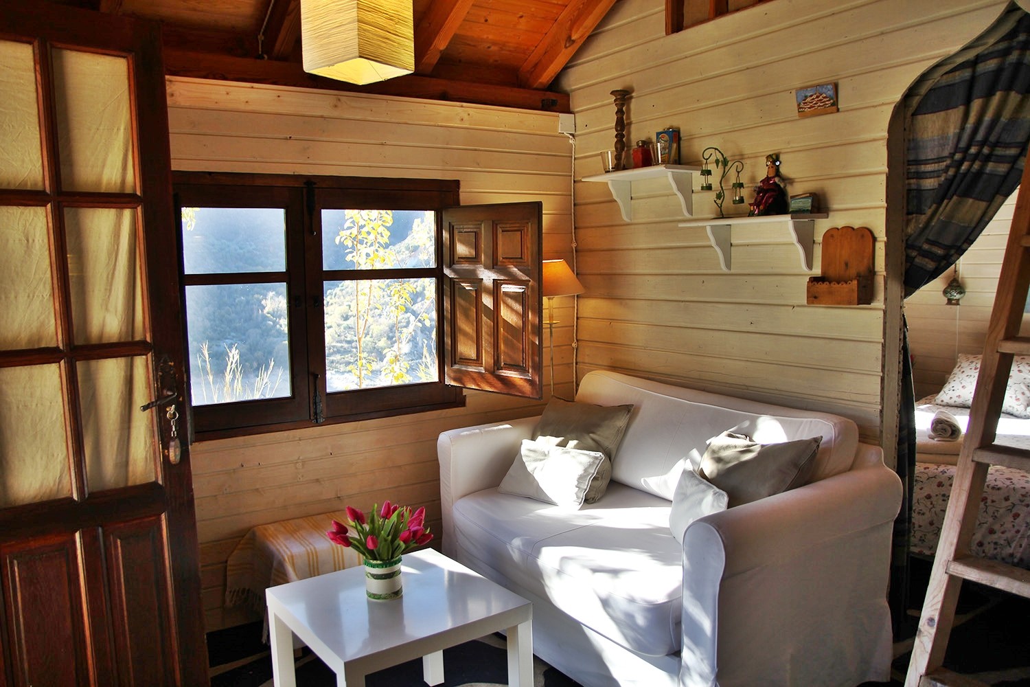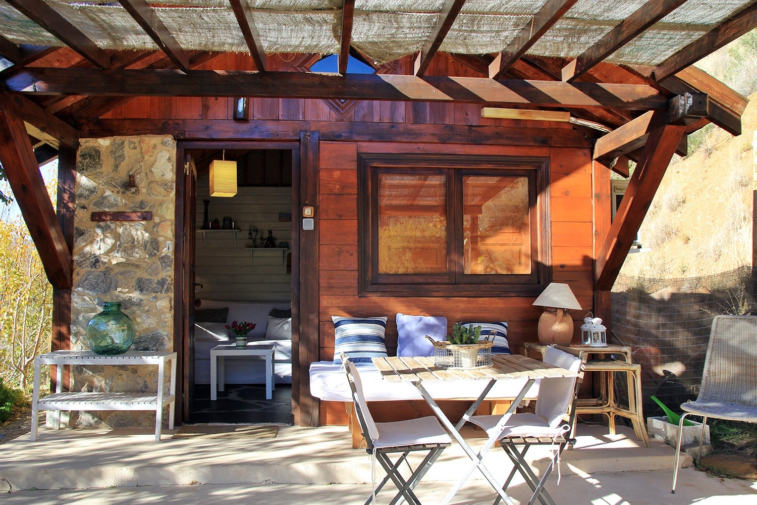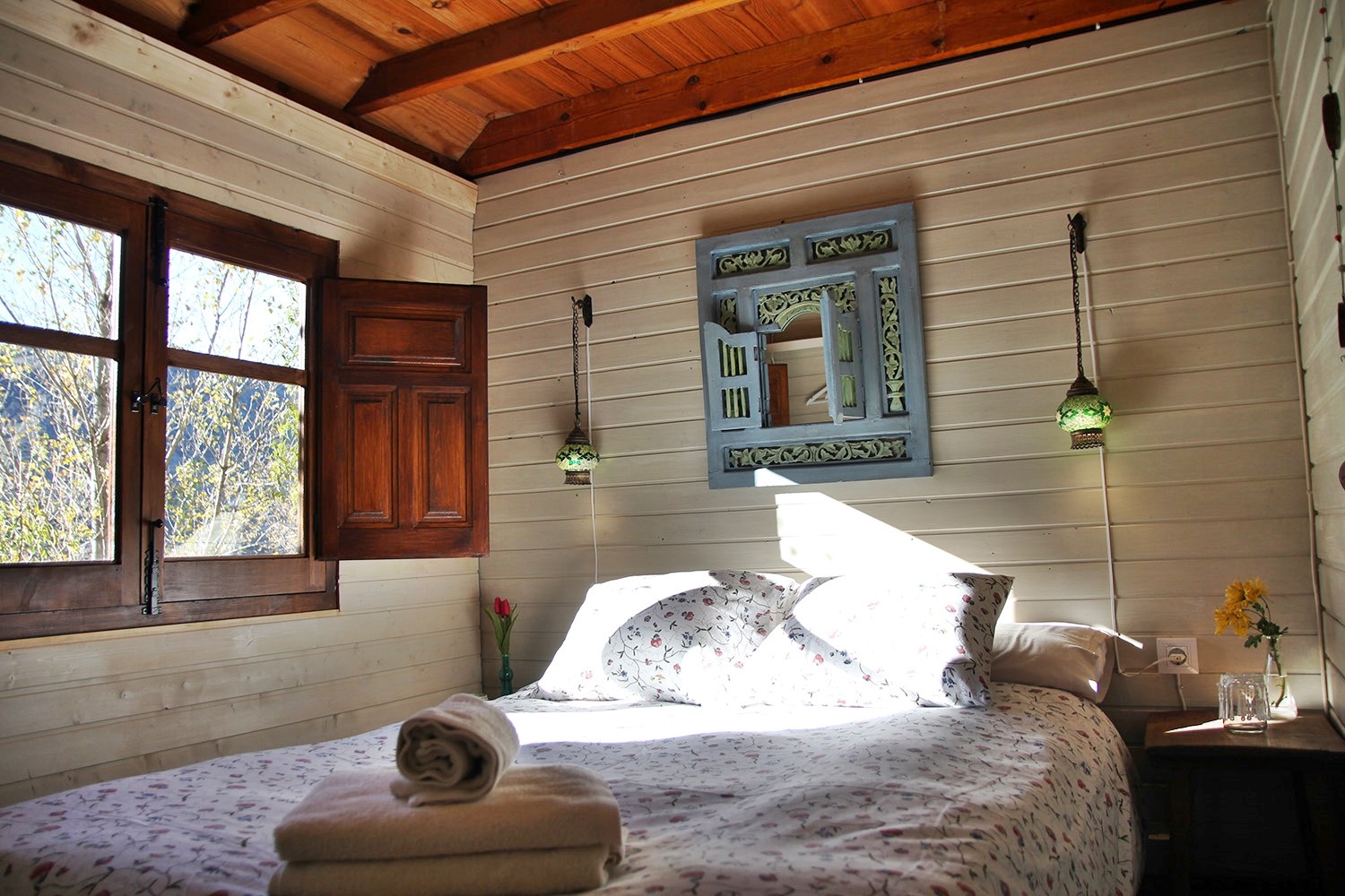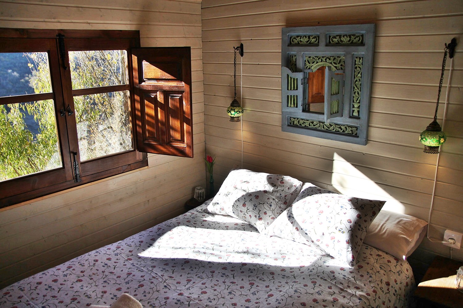 The wooden cabin is situated in the mountains of Güéjar Sierra and is surrounded by nature, overlooking the green waters of the reservoir Canales, and the Natural Park Sierra Nevada.