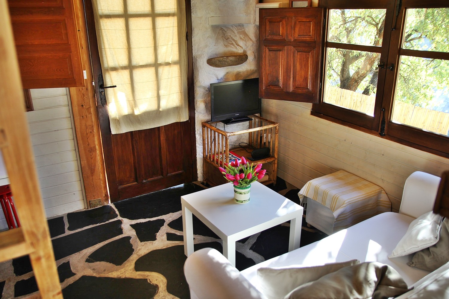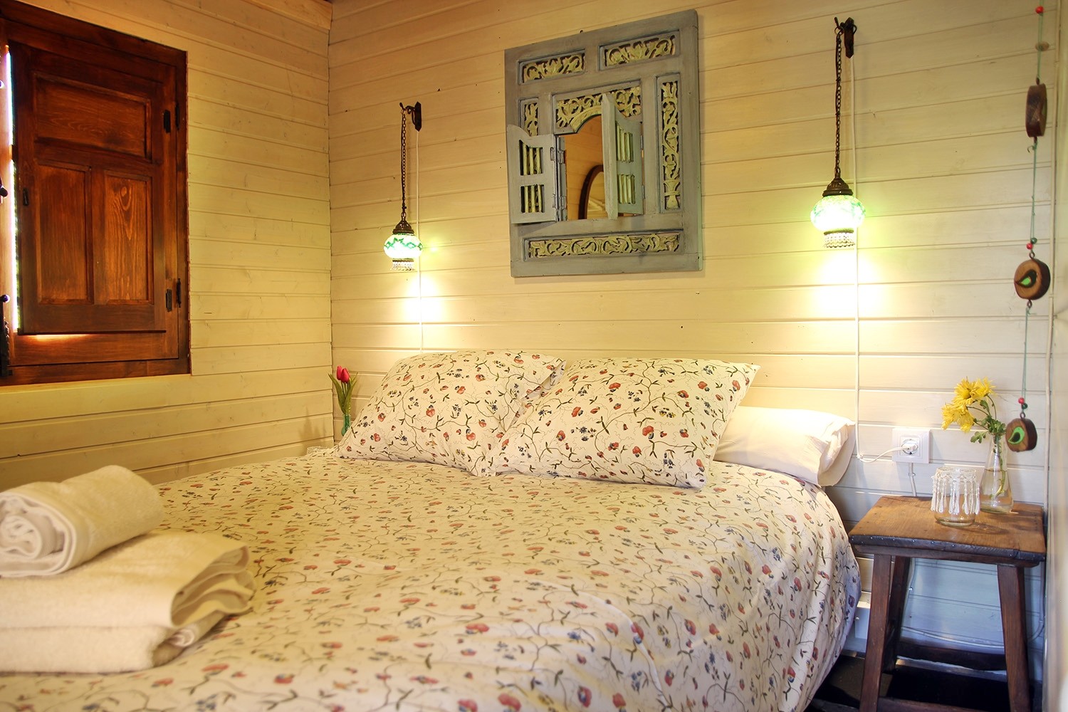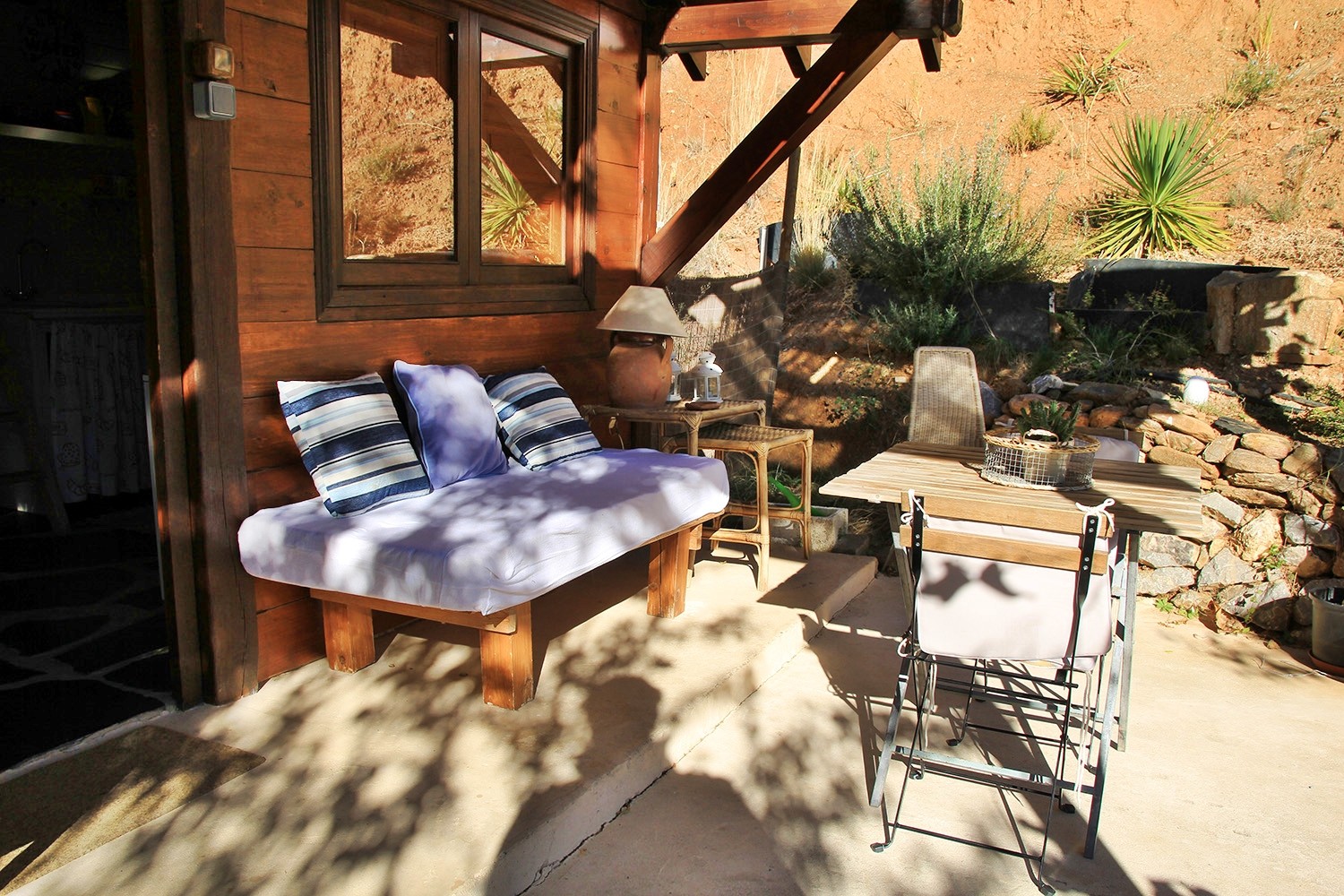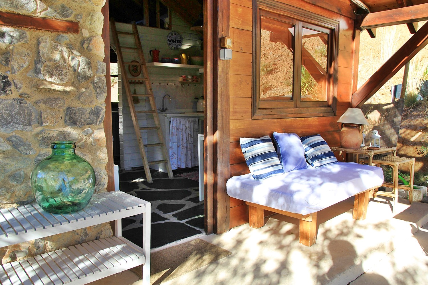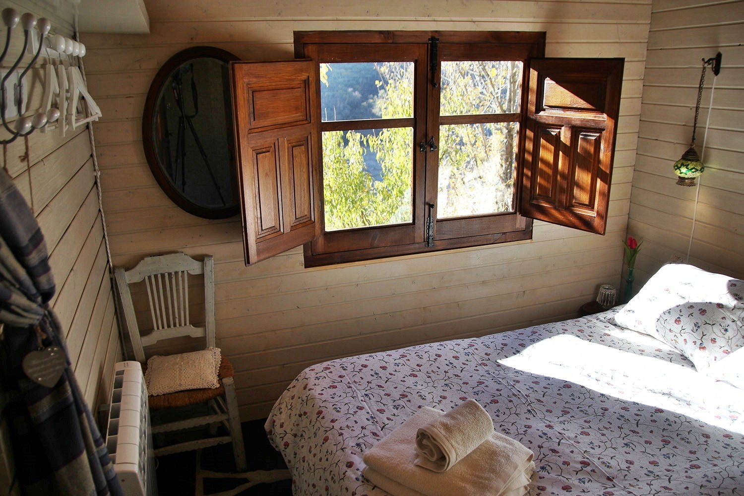 The wooden cabin is situated in the mountains of Güéjar Sierra and is surrounded by nature, overlooking the green waters of the reservoir Canales, and the Natural Park Sierra Nevada.