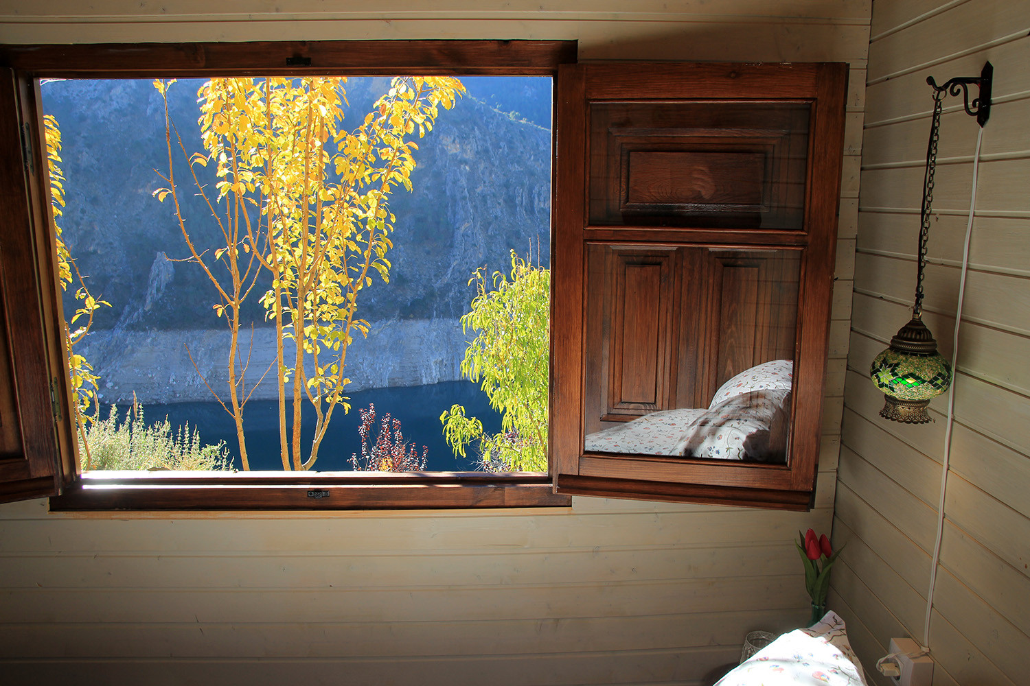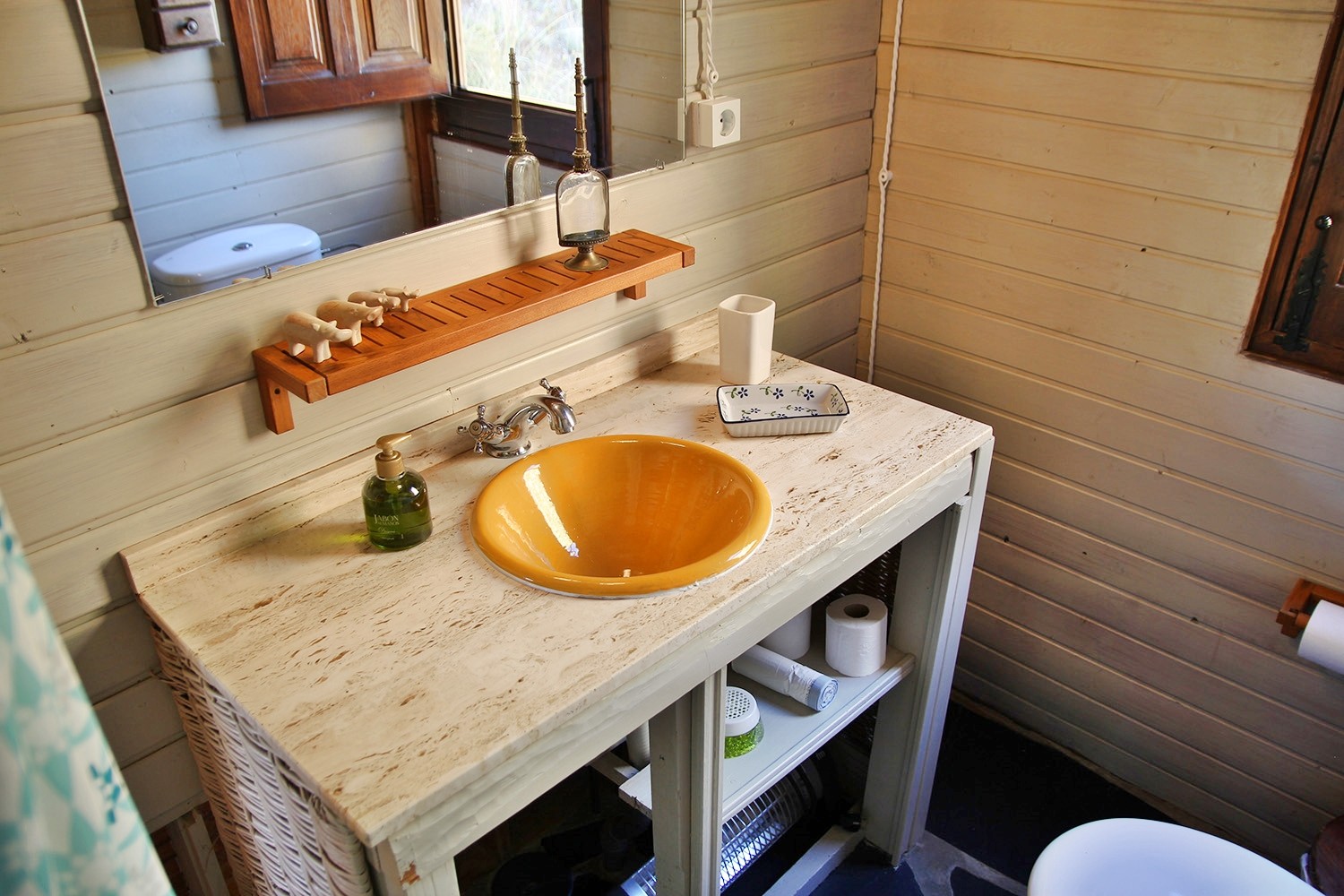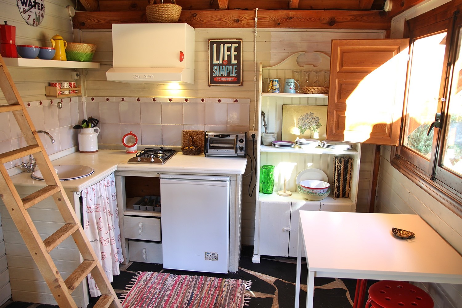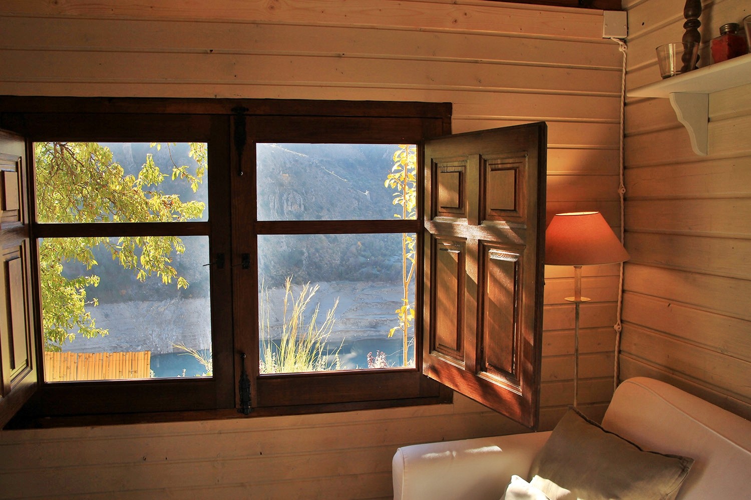 The wooden cabin is situated in the mountains of Güéjar Sierra and is surrounded by nature, overlooking the green waters of the reservoir Canales, and the Natural Park Sierra Nevada.