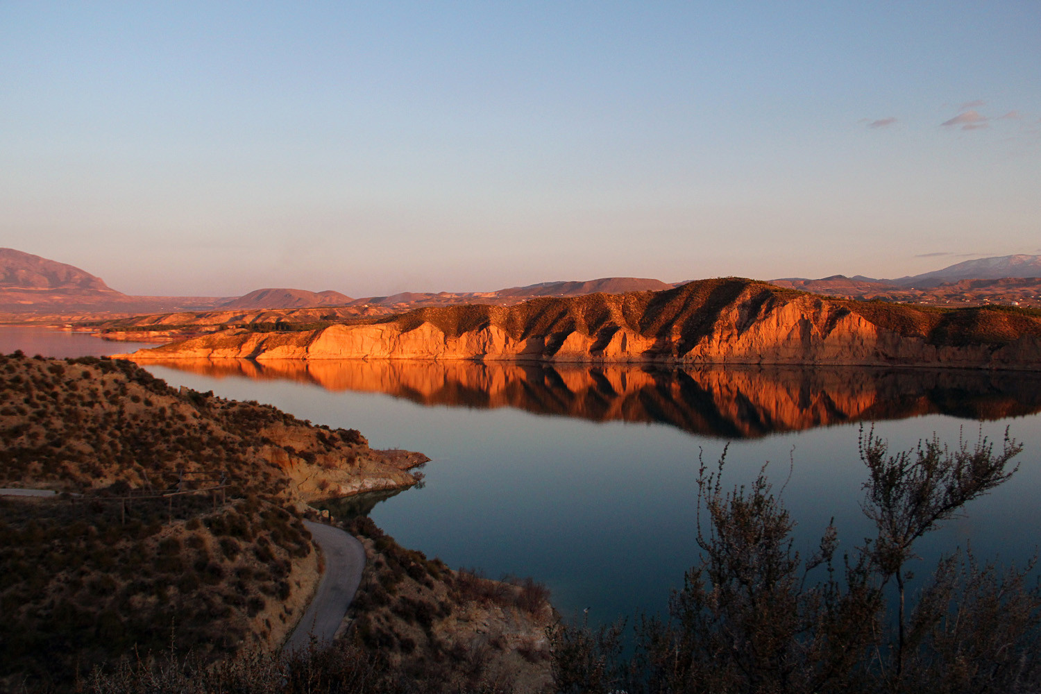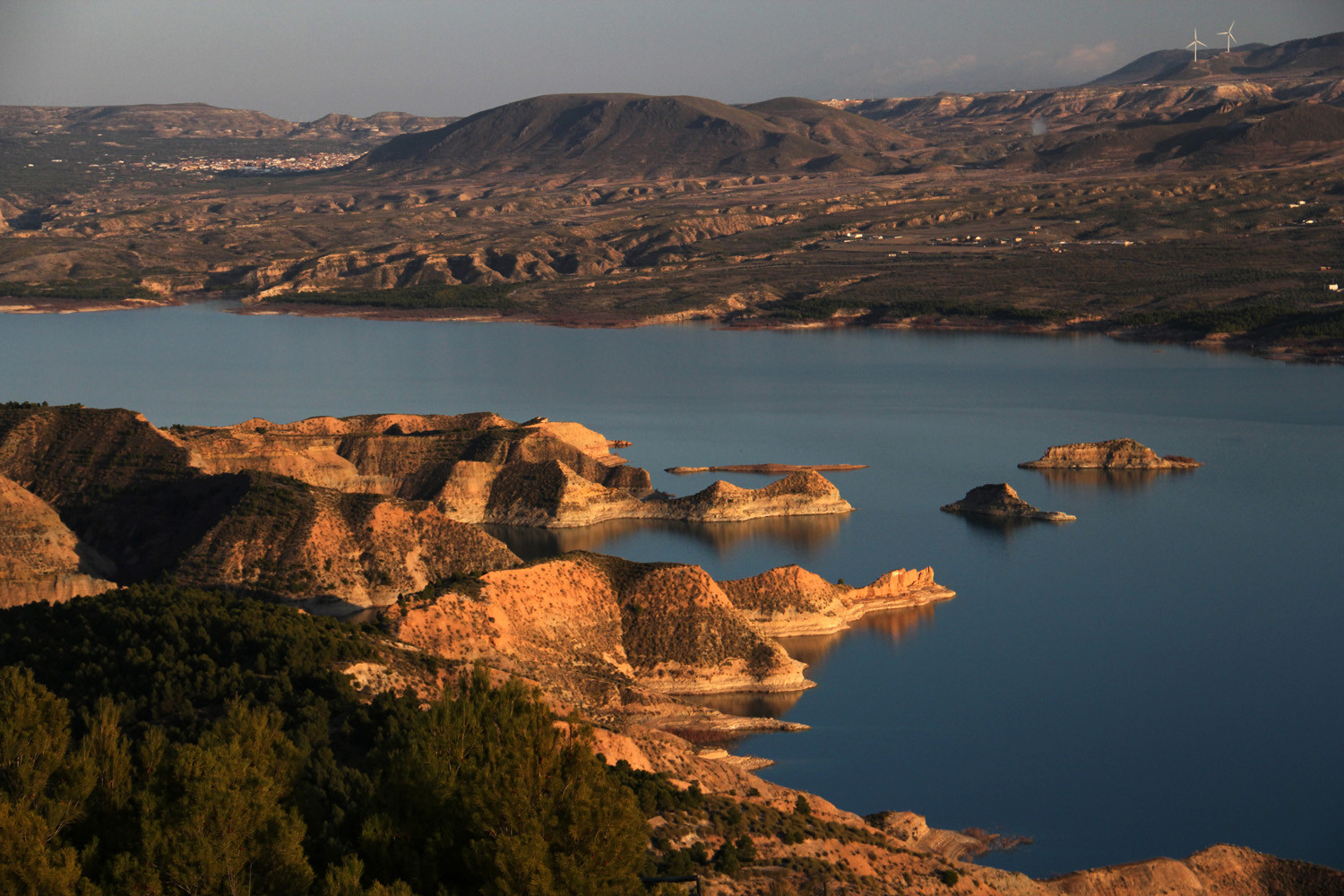 Embalse de Negratin has a surface of 2170 ha and is the third biggest lake of Andalucia. Close to Freila is a beach where you can rent water cycles. At the other side close to the damm you can rent canoes. By taking the road from the dam to Cuevas del Campo you will see after 1 km a sign at the right which leads you to a very nice view point. At the northern side close to Cuevas del Campo are more beaches located. This is also the place where you can find the first inland naturist beach of Andalucia.
