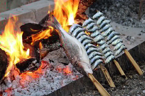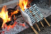 Typical food that is served at the beach restaurants are the "espetos" with sardines or octopus which are prepared on charcoal