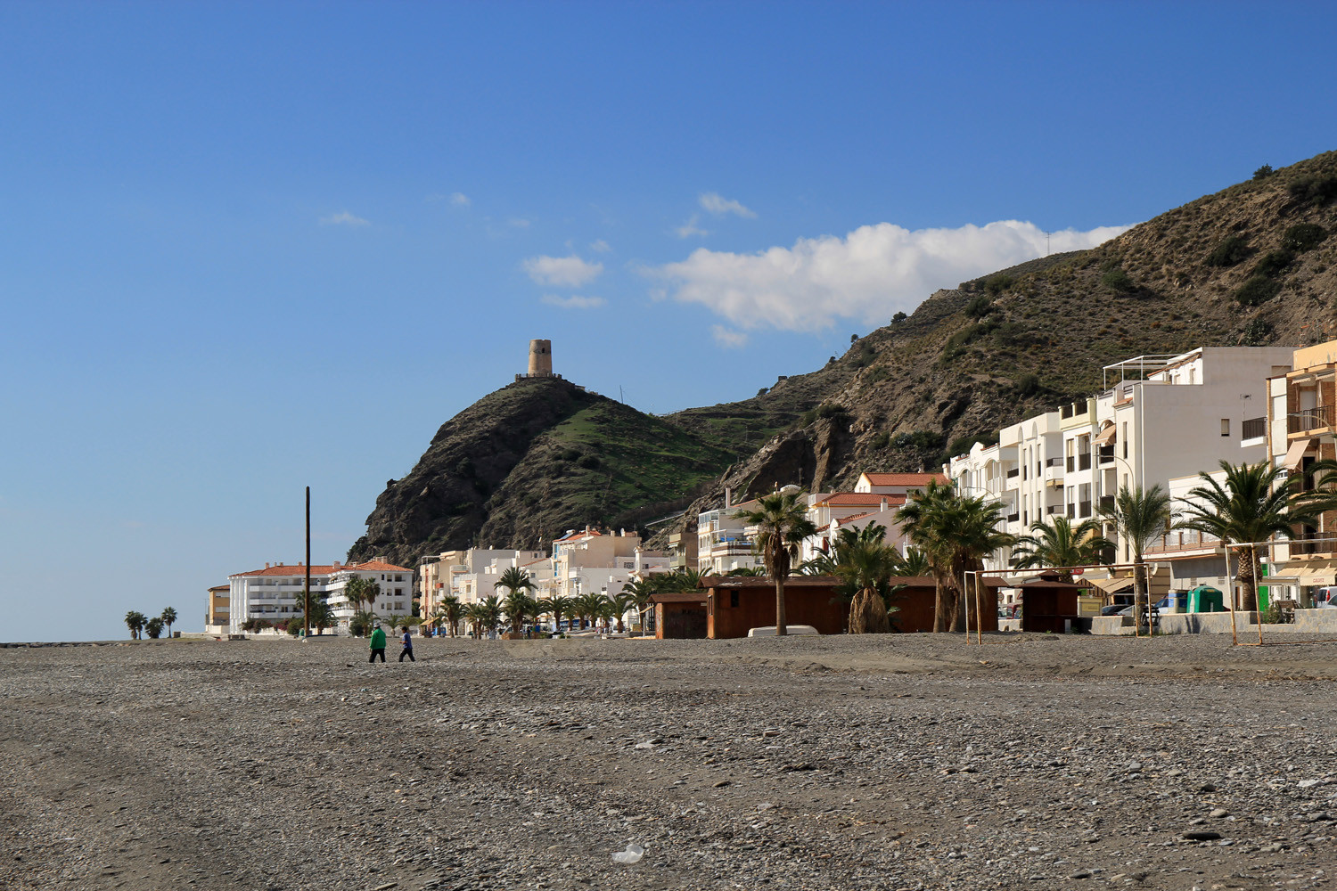 La Mamola is situated at the beach and is part of the municipality Popolos. The small town is located at the foot of a hill crowned by the Tower of Cautor.