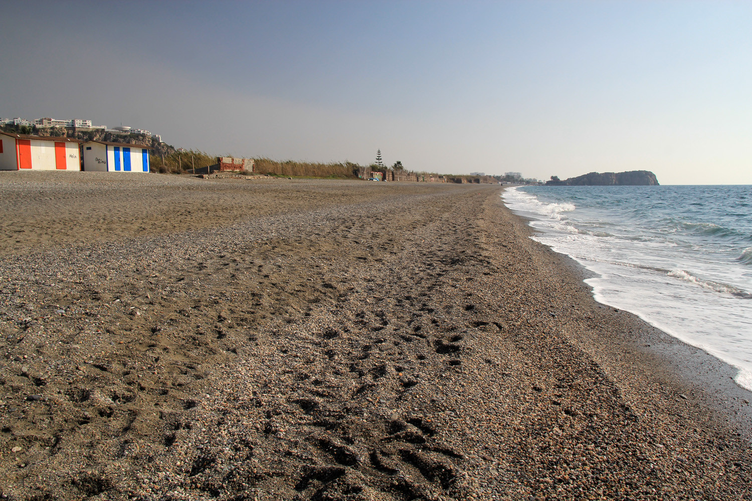 Playa La Guardia is one of the main beaches of Salobreña. It can be reached by the hamlet La Caleta or by Salobreña. At the begiining of the beach, at the side of Salobreña are some beach restaurants.