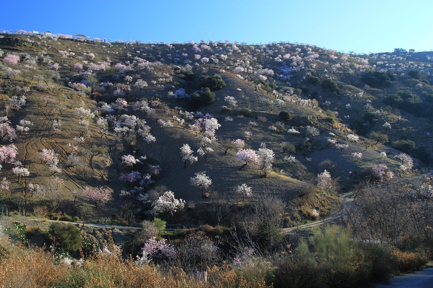 The province has a large almond production. In spring this results fields of trees with white flower. The areas are situated in the Alpujarra, El Marquesado and the Altiplano. Because of the climate it can be that the trees in the Alpujarra have flowers and the the trees in the Altiplano have to wait a month.