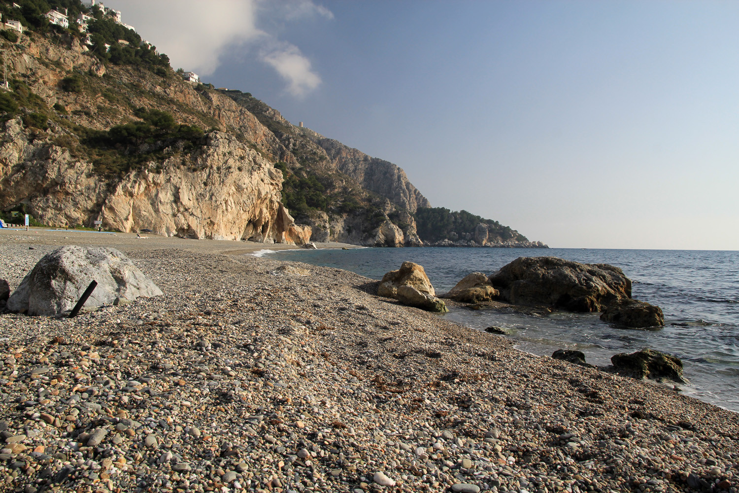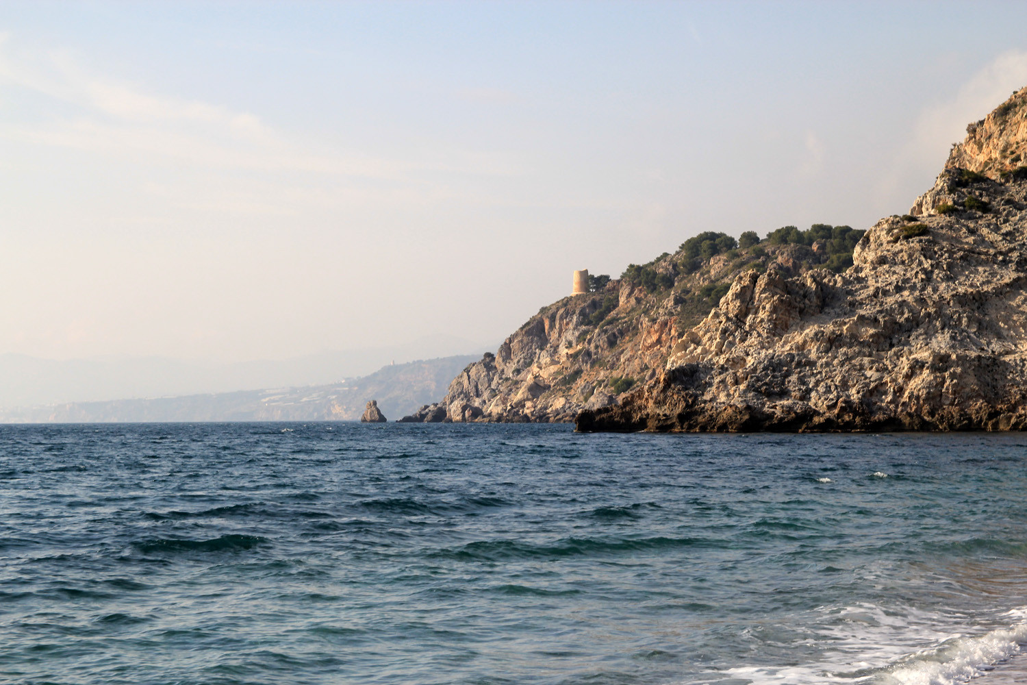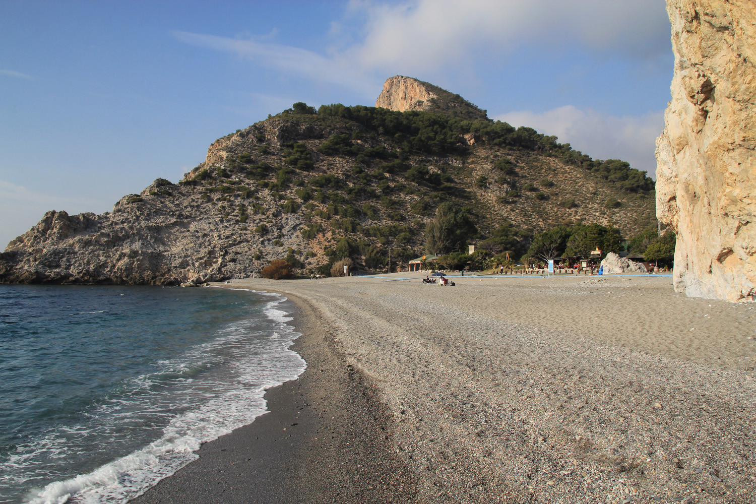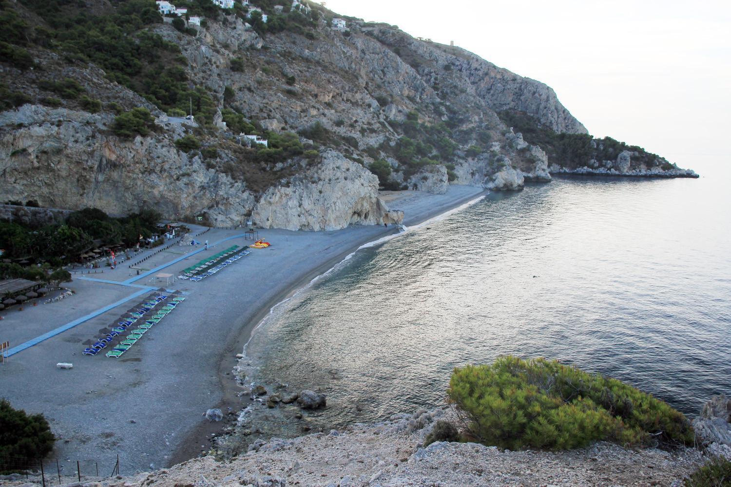 The Cliffs of Maro-Cerro Gordo are a Natural Area located between the towns of Nerja, in the province of Málaga and Almuñécar of the province of Granada,. It is declared as ZEPIM (Specially Protected Area of Importance for the Mediterranean) Importance. It consists of a series of coves and cliffs up to 250 m of altitude, formed by foothills of the Sierras de Tejeda, Almijara and Alhama, eroded by the waves of the sea. In the same geological complex, is the Cueva de Nerja situated, even if the delimitation of Natural Place. Highlights include the beaches of Las Alberquillas, Cala del Cañuelo, both in Malaga, and Cantarriján situated in Granada which is a nude beach.