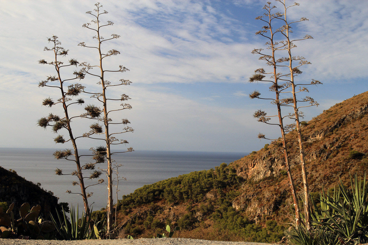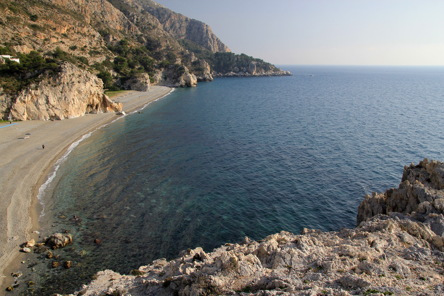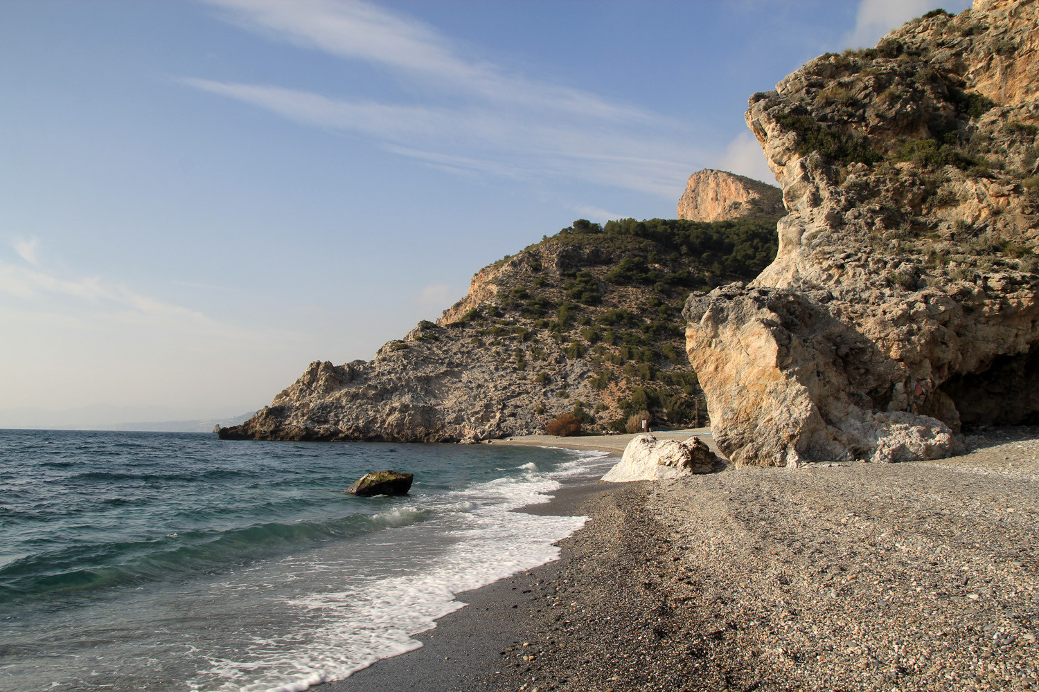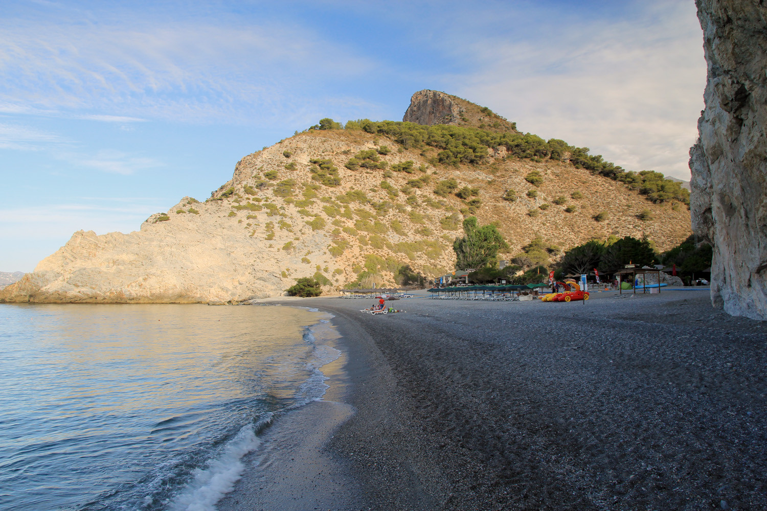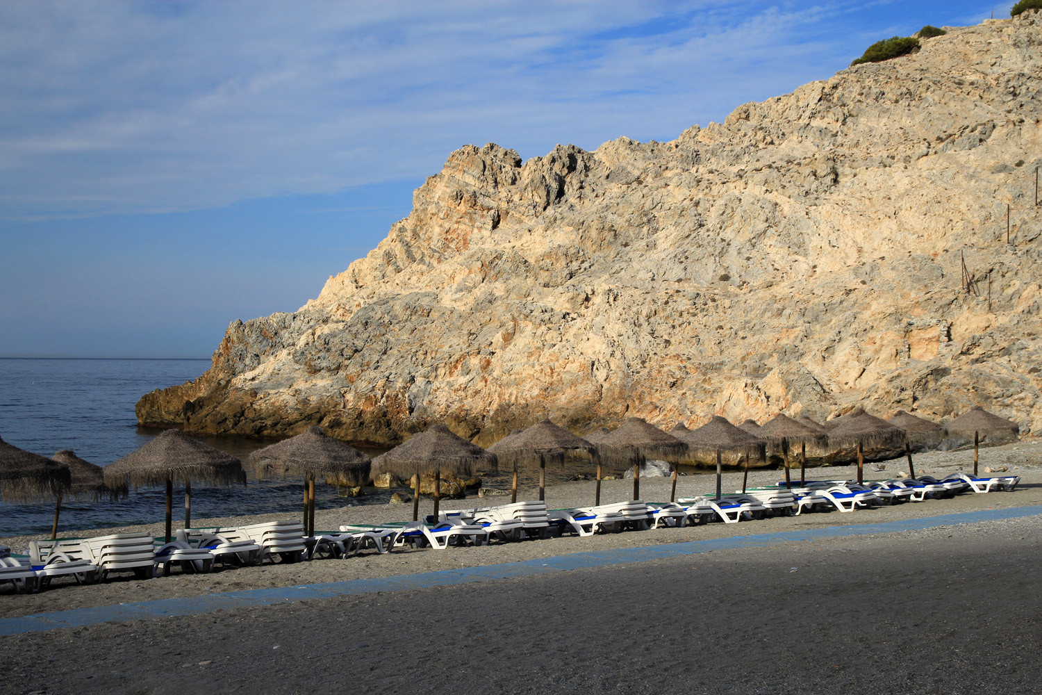 The Cliffs of Maro-Cerro Gordo are a Natural Area located between the towns of Nerja, in the province of Málaga and Almuñécar of the province of Granada,. It is declared as ZEPIM (Specially Protected Area of Importance for the Mediterranean) Importance. It consists of a series of coves and cliffs up to 250 m of altitude, formed by foothills of the Sierras de Tejeda, Almijara and Alhama, eroded by the waves of the sea. In the same geological complex, is the Cueva de Nerja situated, even if the delimitation of Natural Place. Highlights include the beaches of Las Alberquillas, Cala del Cañuelo, both in Malaga, and Cantarriján situated in Granada which is a nude beach.