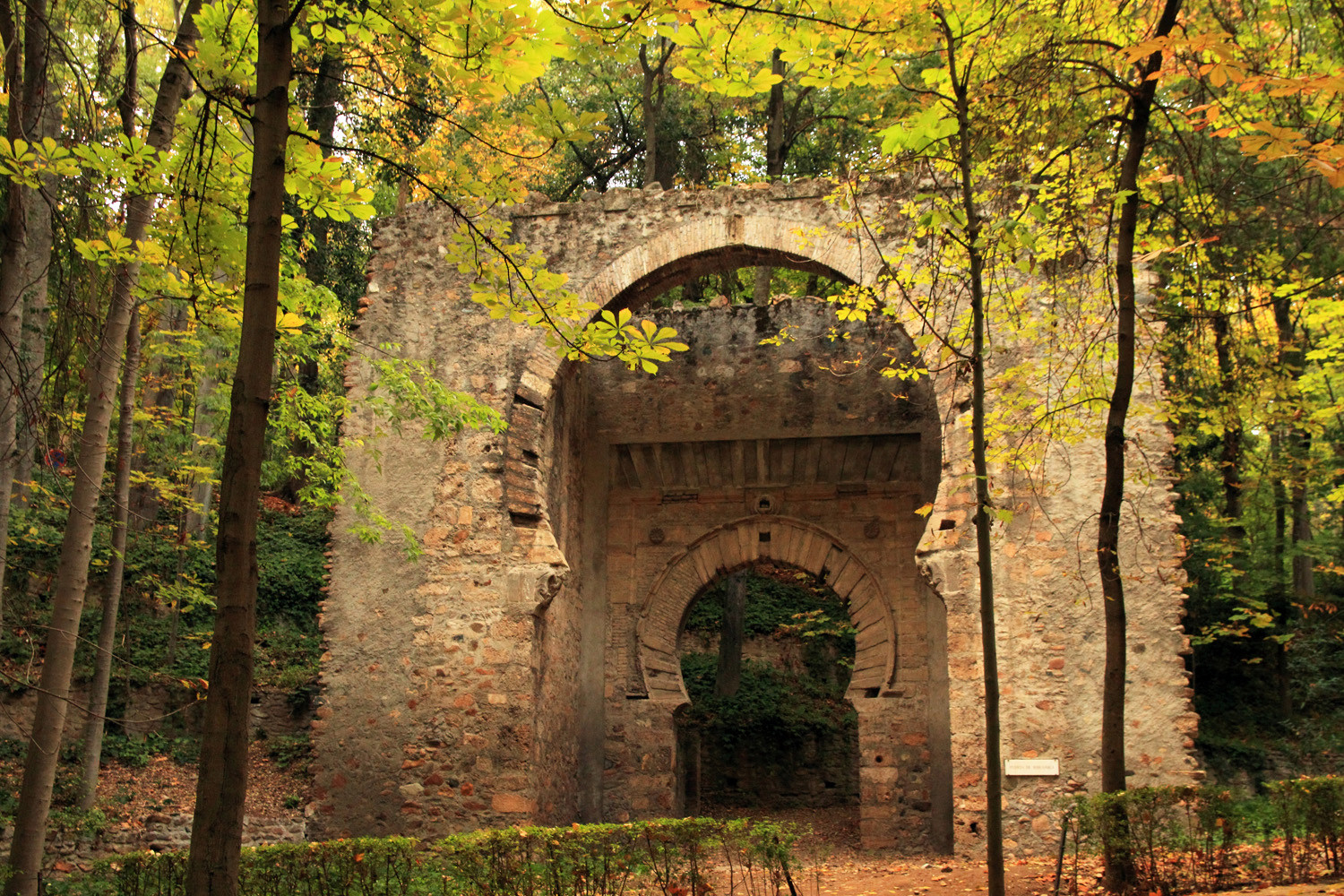 Among the trees, almost hidden by the foliage of vegetation, and within the contour of the central path, you will see the remains of the gate Bib-Rambla, built in the eleventh or twelfth century. Originaly it was situated in the center near the suqare with the same name. Declared of cultural interest of Spanish heritage.