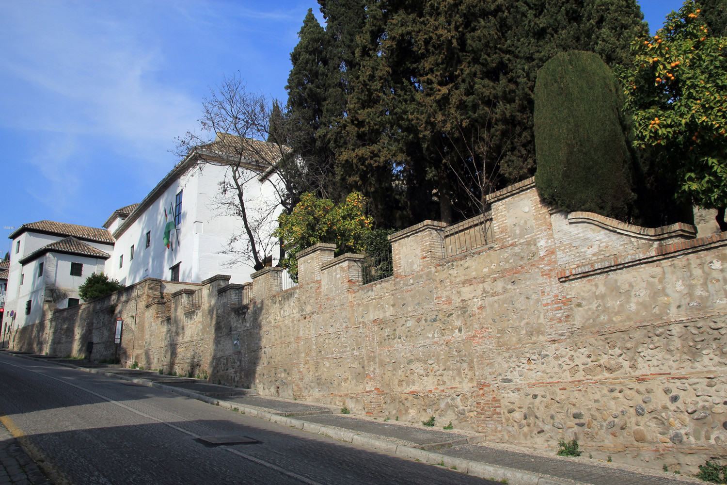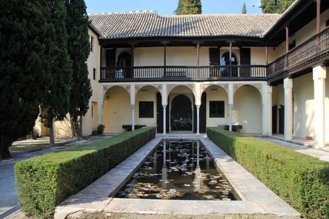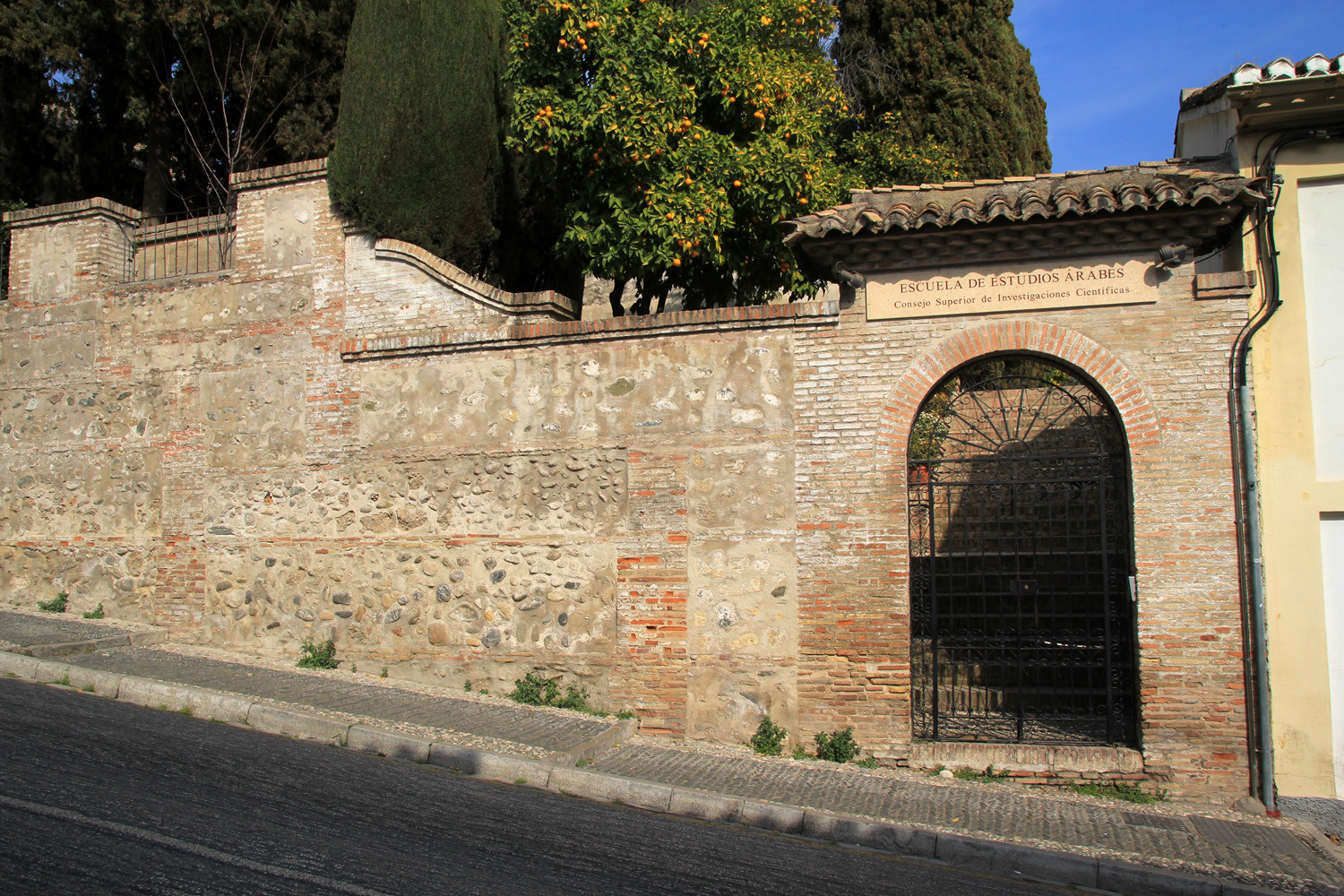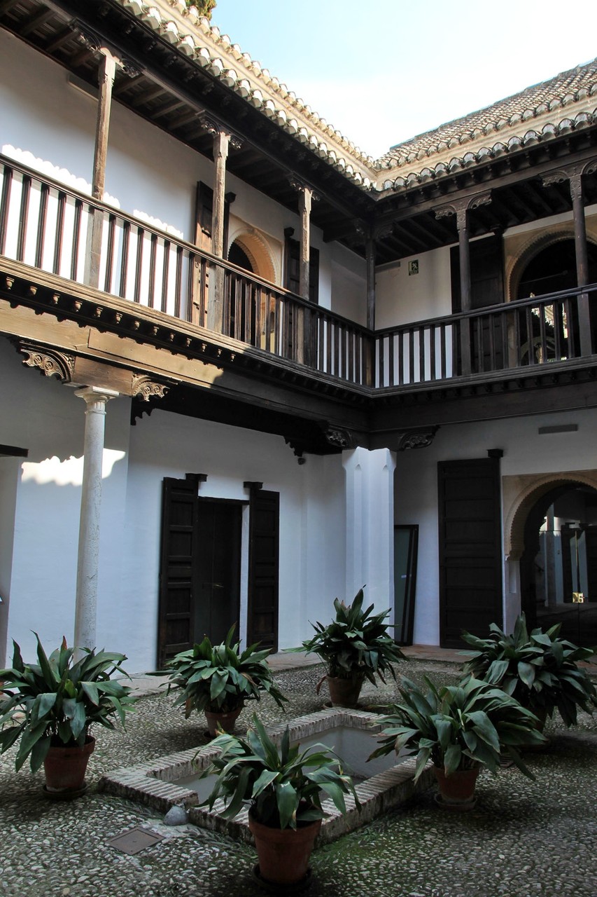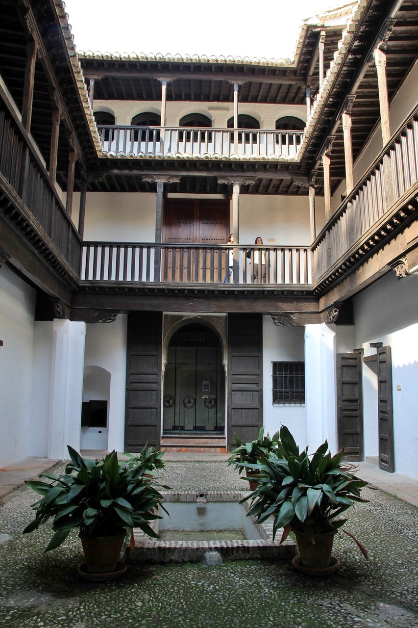 In 1932 The Escuela de Estudios Árabes is founded in the two houses. This organisation has the aim to protect and promote Arabic studies in Spain. The houses are located on a large site adorned with an orchard and flower gardens. They are dating from the beginning of the 16th century. The most southern house seems to be constructed on the remains of an 14th century Nasrid palace. Part of the floor elements has been conserved.