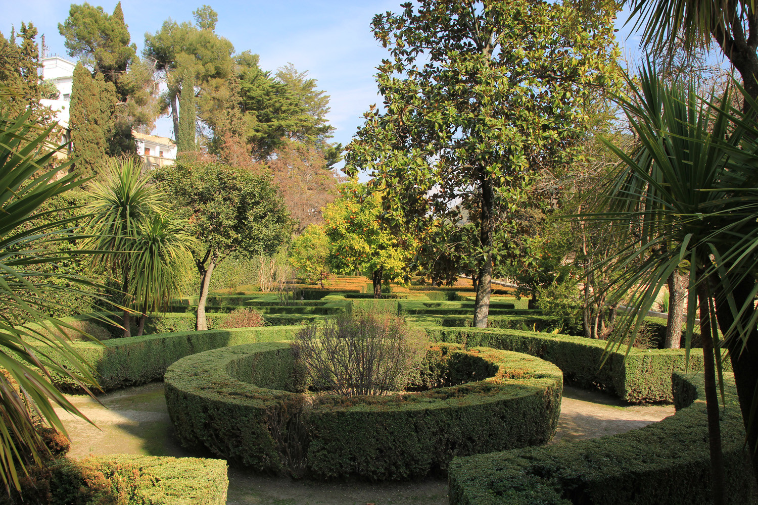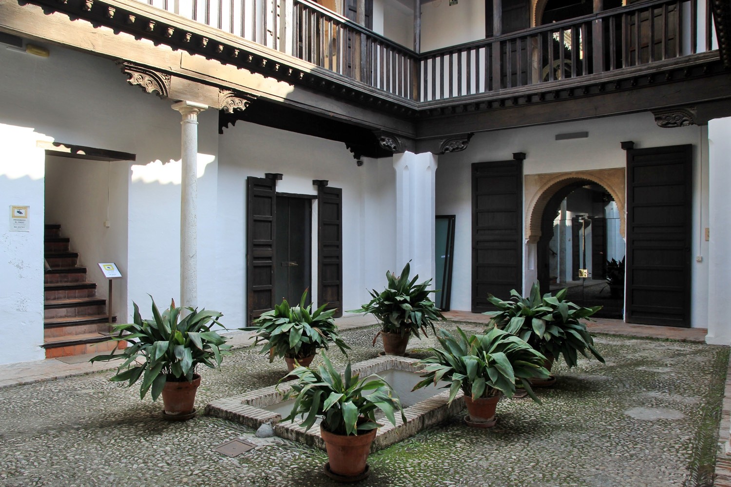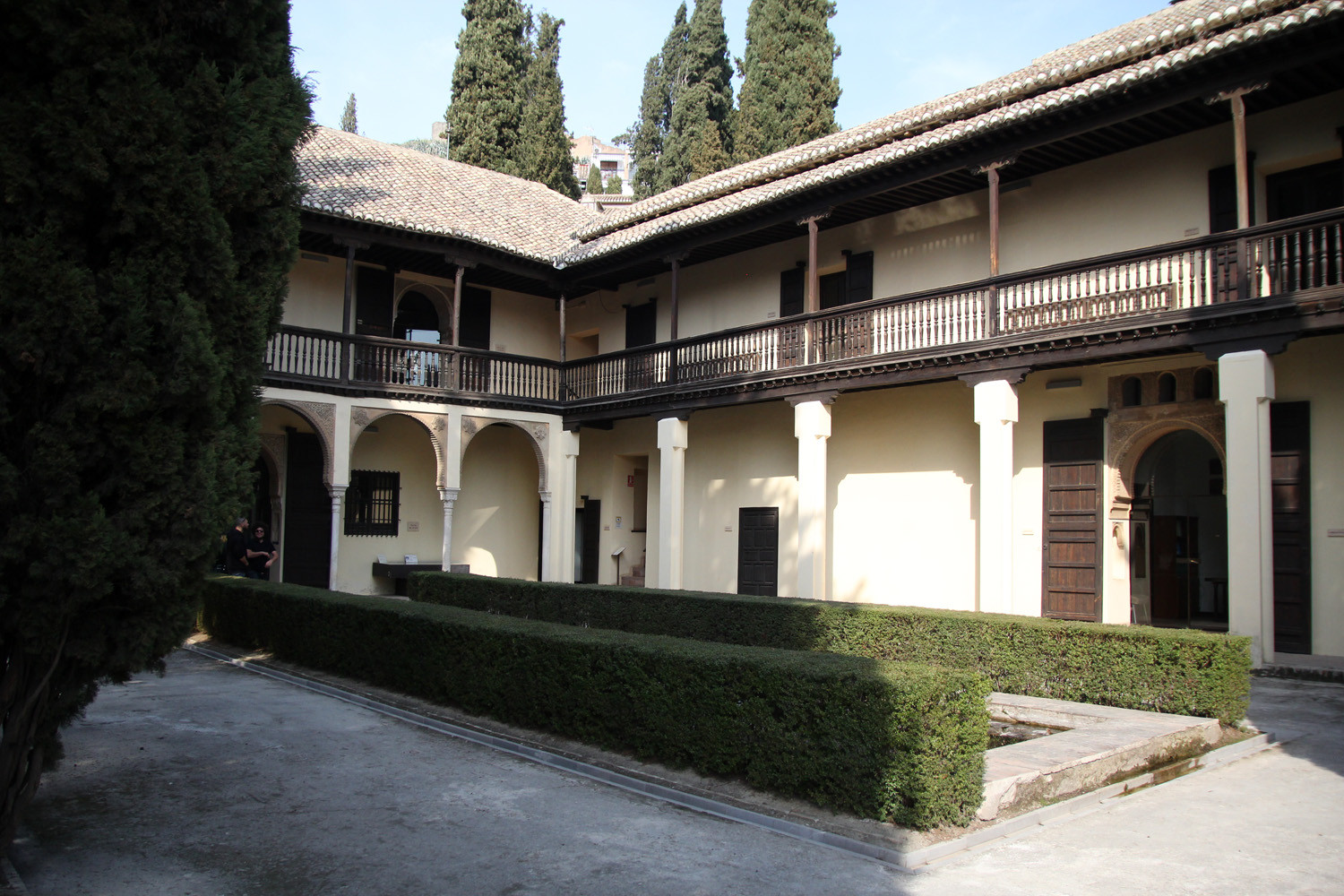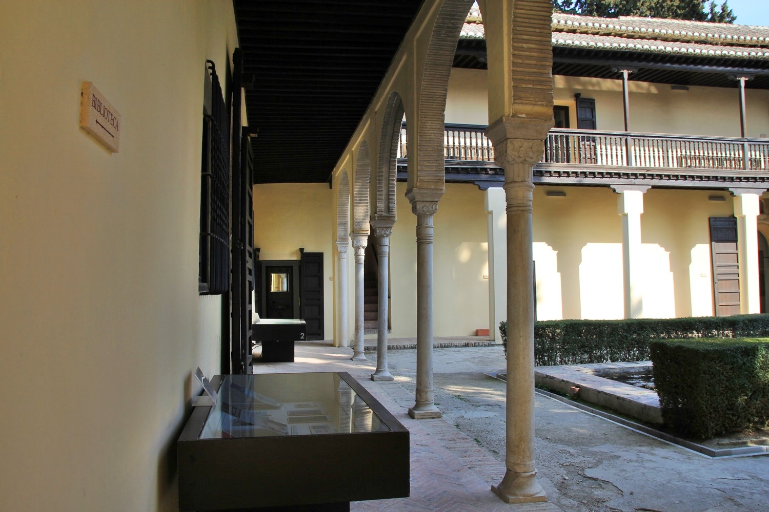 In 1932 The Escuela de Estudios Árabes is founded in the two houses. This organisation has the aim to protect and promote Arabic studies in Spain. The houses are located on a large site adorned with an orchard and flower gardens. They are dating from the beginning of the 16th century. The most southern house seems to be constructed on the remains of an 14th century Nasrid palace. Part of the floor elements has been conserved.