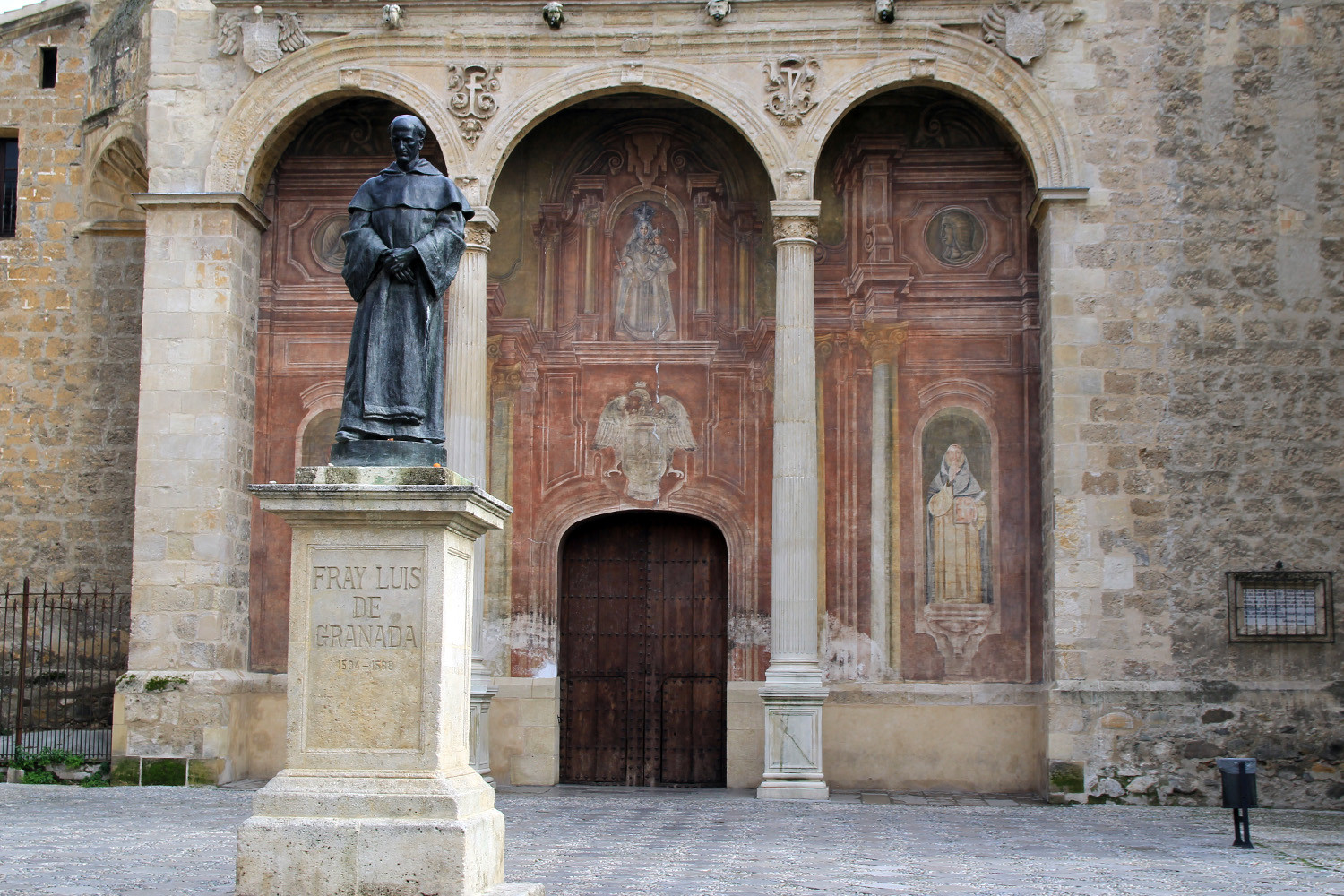 The church is located on a square in the center of the district Realejo. The construction began in 1512 and it was part of the Monastery of Santa Cruz. It has several styles: Baroque, Gothic and late Renaissance. The Gothic taste can be seen in its arches and vaults. It was completed in the Renaissance, and built by different artists. It makes it one of the most important buildings of Granada. On the square is also the statue of Fray Luis de Granada. Next to the church is the convent Santa Domingo situated.