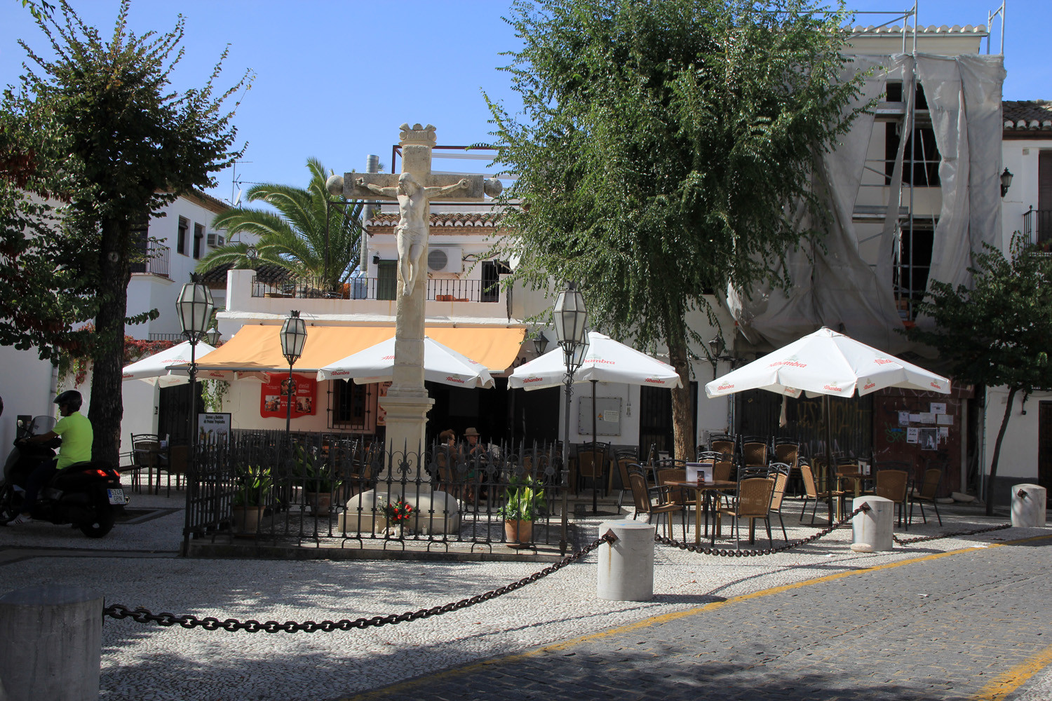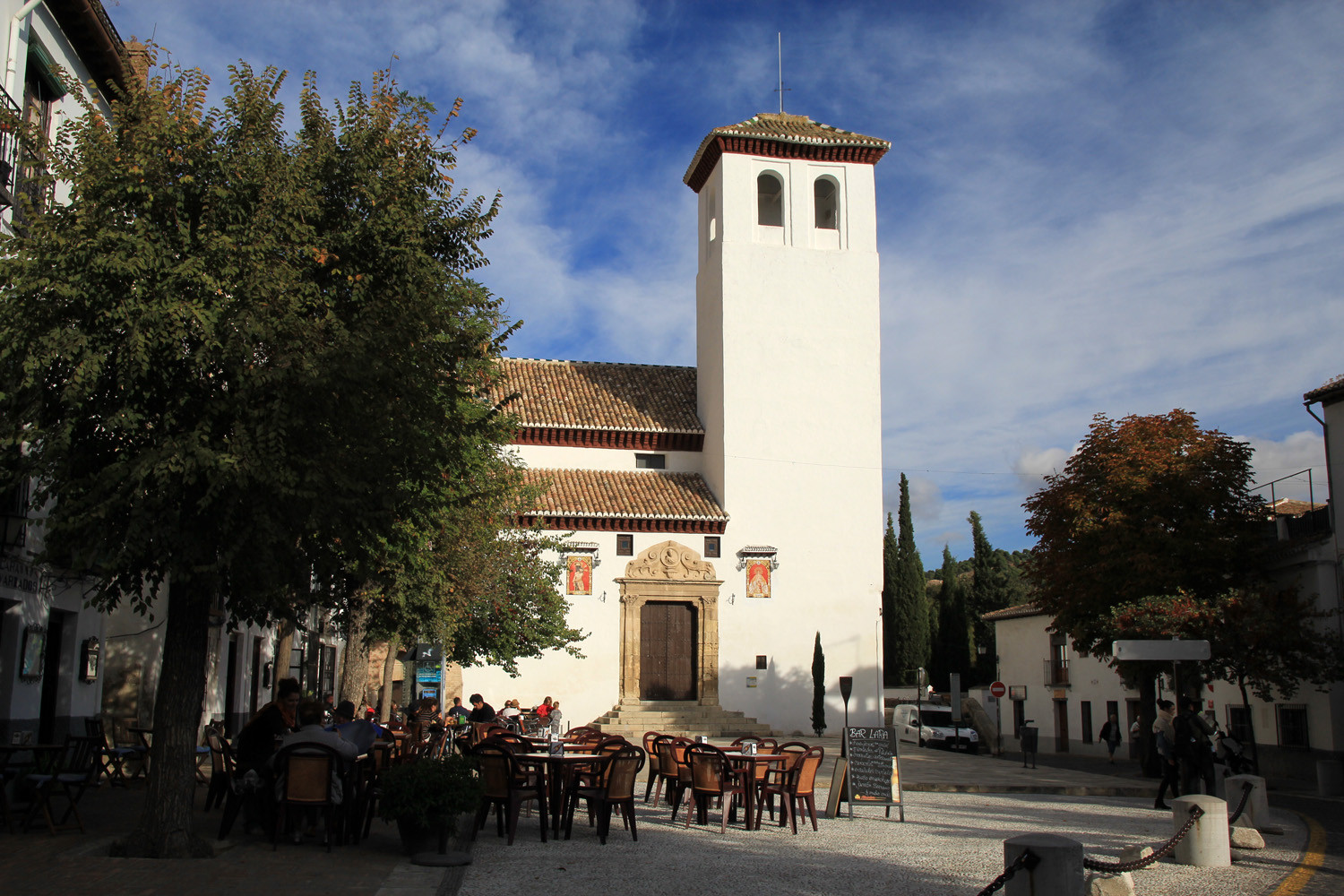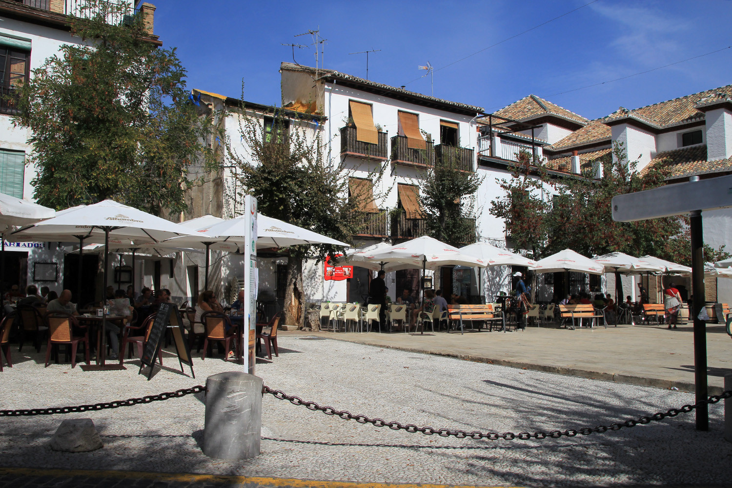 Very nice place to have a drink. There are in total 4 bars/restaurants that have their terrace on the square. The square is situated at the foot of the church San Miguel Bajo. It is also close to the old city walls "Muralla de la Alcazaba Cadima". The touristic train is passing by this place.
