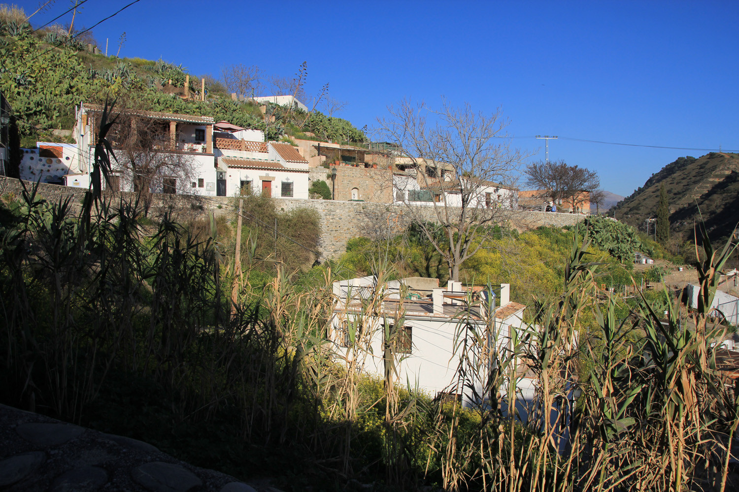 Granada City (cave district) - Sacromonte: The cave house has a living room, an open full equiped kitchen, one bedroom and a bathroom. In front of the cave is a terrace with views on the valley of the river Darro.......