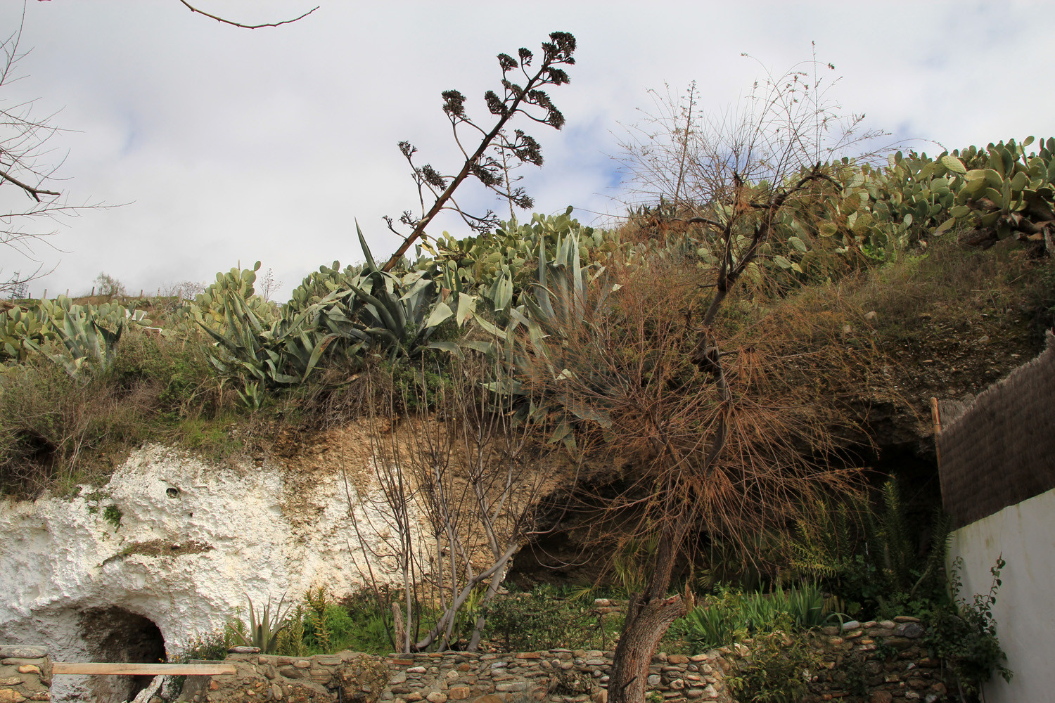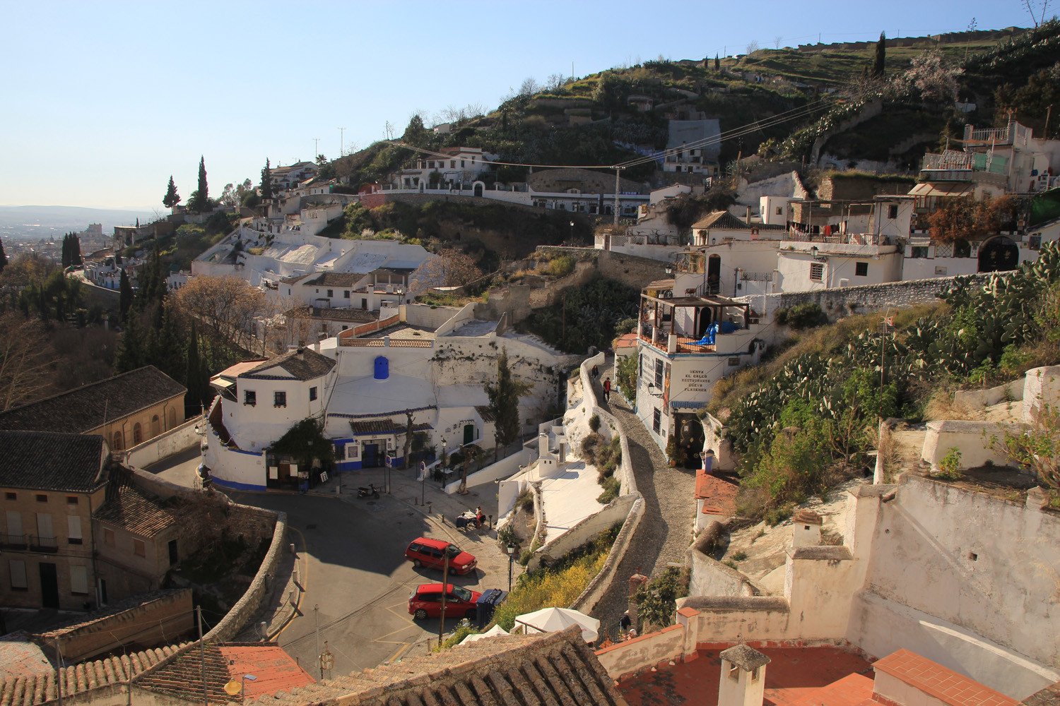 Granada City (cave district) - Sacromonte: The cave house has a living room, an open full equiped kitchen, one bedroom and a bathroom. It is possible to place an extra individual bed in the living room. In front of the....