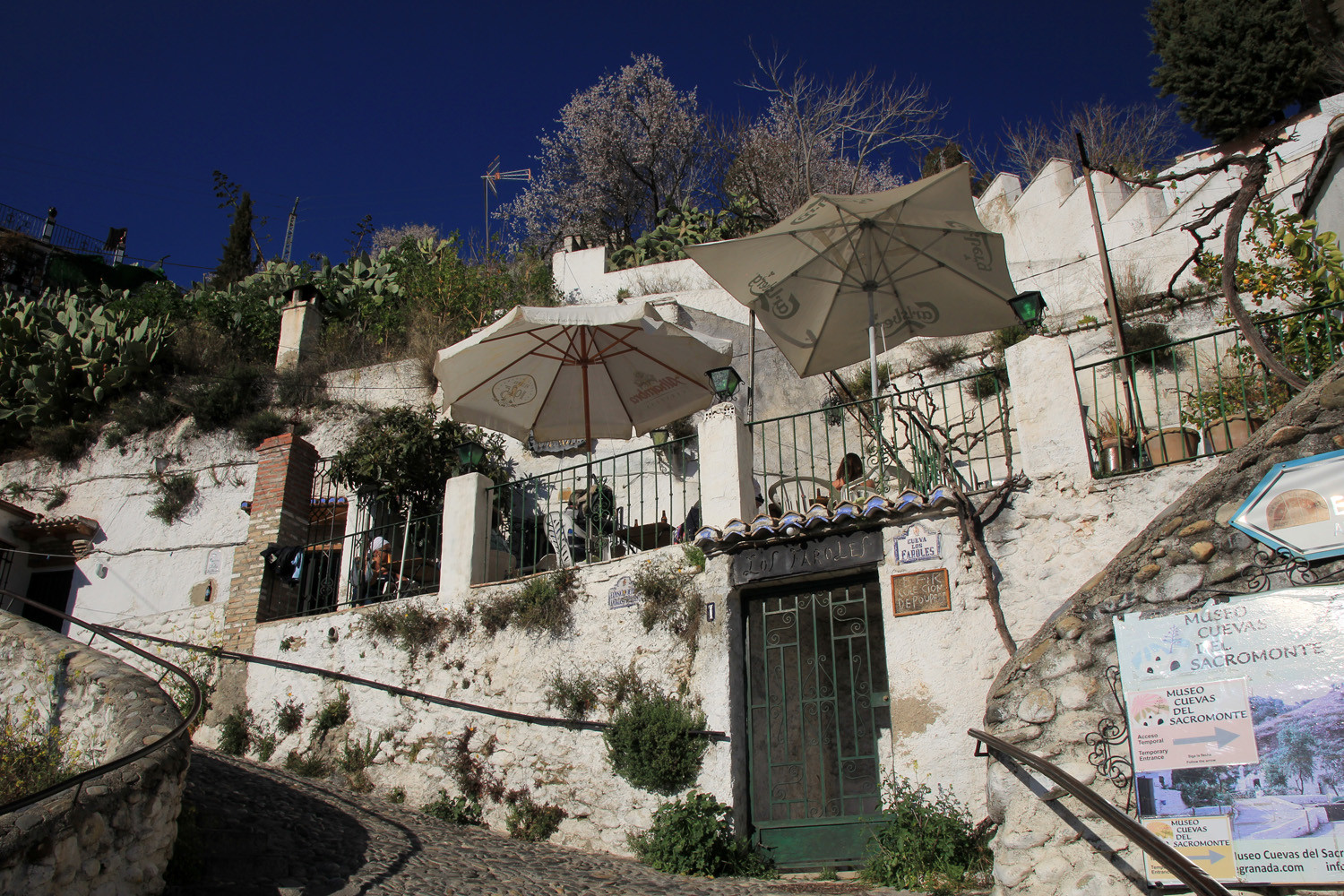 Sacromonte is a neighbourhood of Granada, in Spain. It derives its name from the nearby Sacromonte Abbey, which was founded in 1600 on the hill of Valparaiso outside the old city, and is built over catacombs (originally mine workings of Roman date). Sacromonte is a part of the Albaicin.